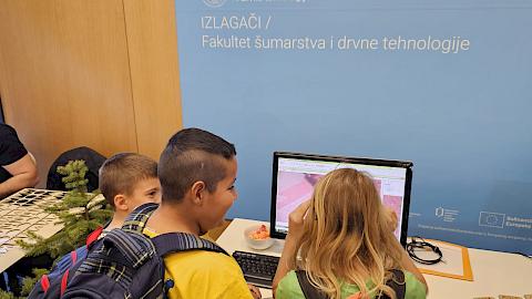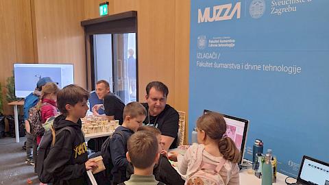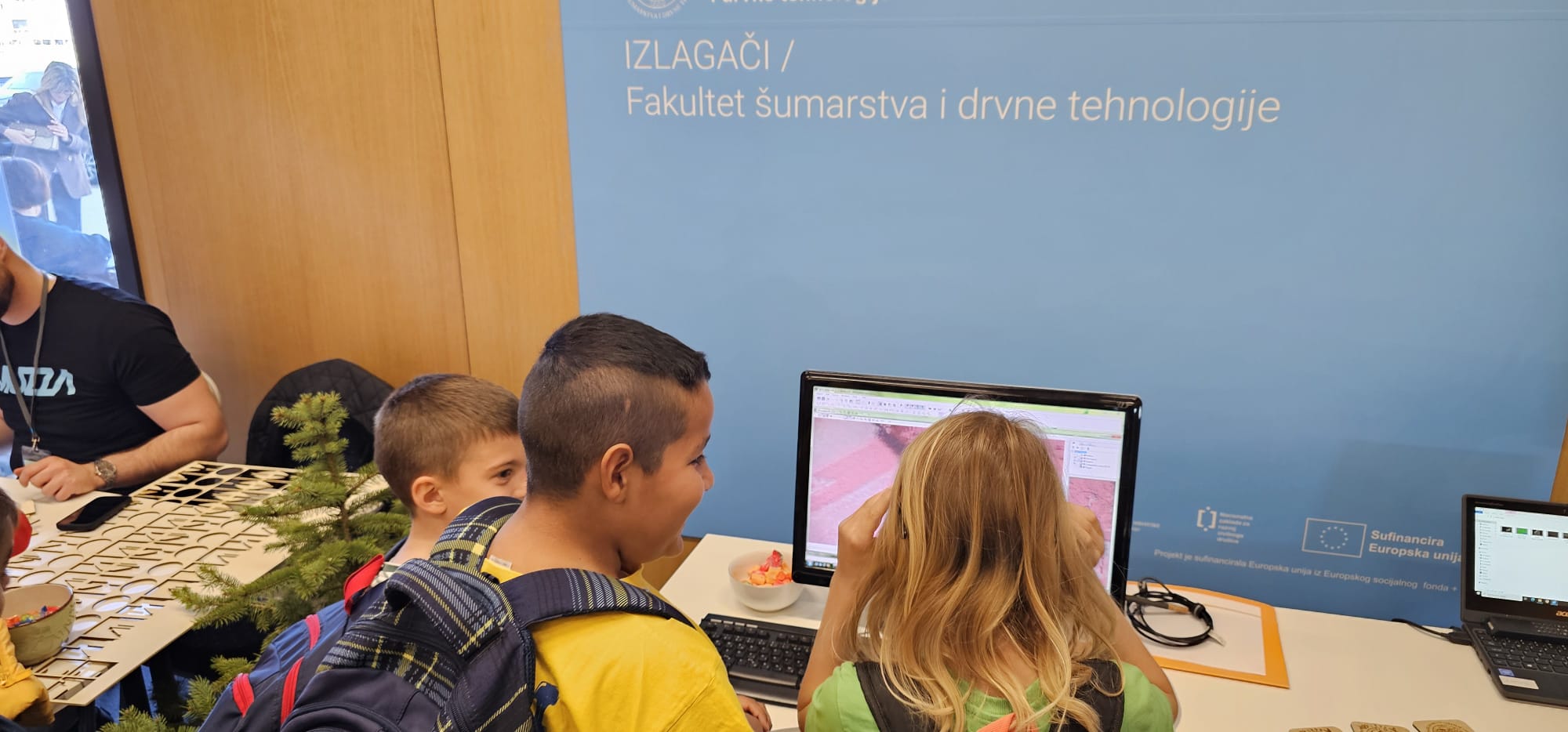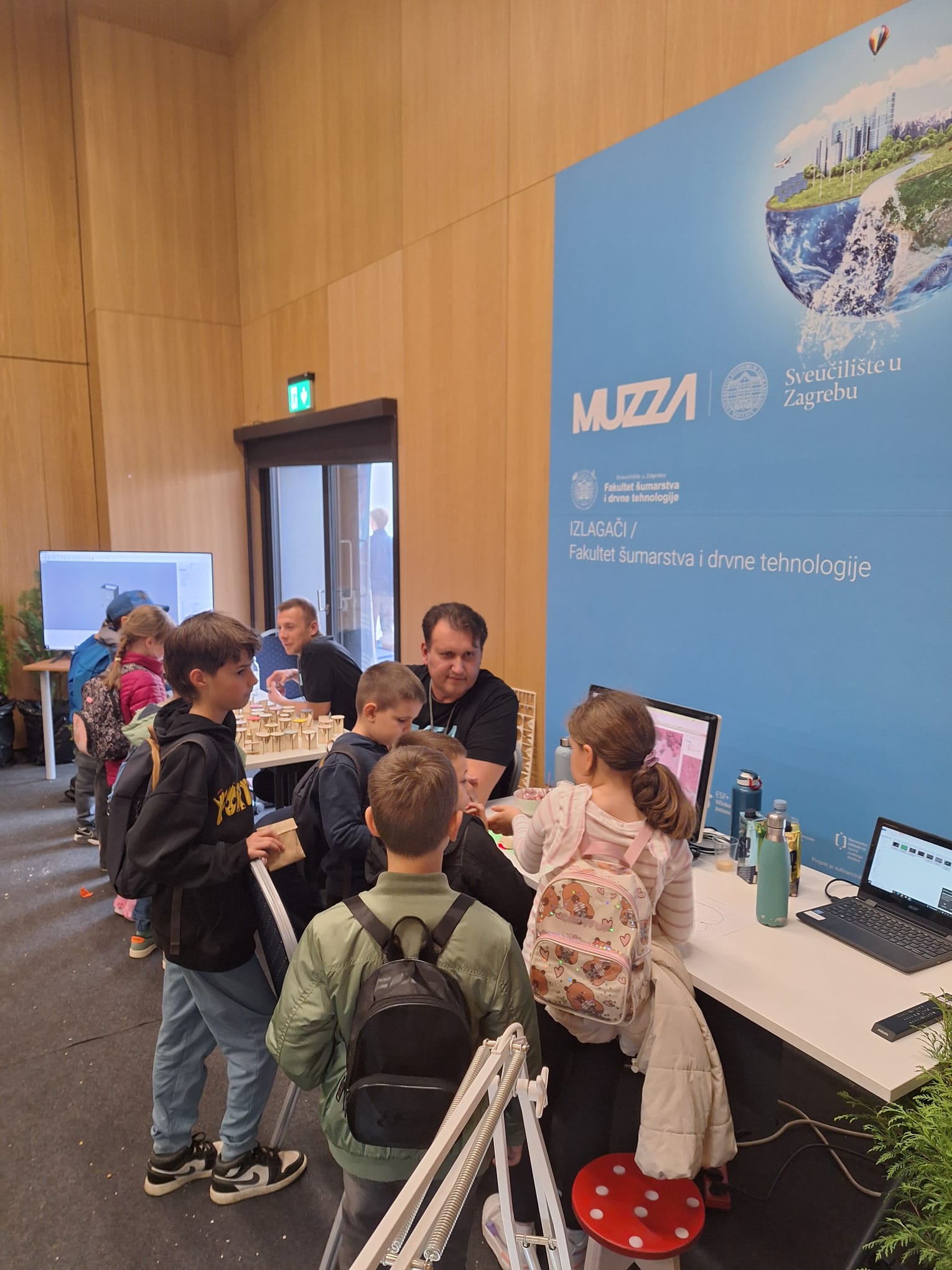 Fakultet šumarstva i drvne tehnologije također je ponosno sudjelovao kao izlagač, pružajući svim znatiželjnim posjetiteljima priliku da postanu znanstvenici u području šumarstva i drvne tehnologije. Isprobali su 3D tehnologiju, prošetali virtualnom šumom, vidjeli CNC upravljanje, upoznali strukturu drva, istražili botaniku i ekologiju, te sudjelovali u mnogim drugim kreativnim radionicama.